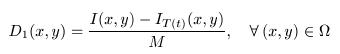 D1 measures the change of perception of two different objects (I and IT(t)) on a fixed background M. In otherwords it evaluates how the visibility of an object of intensity I(x; y) changes if it is substituted for the threshold value T(t).